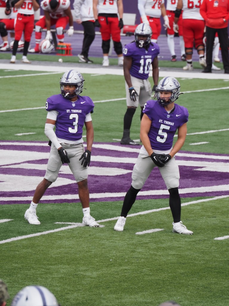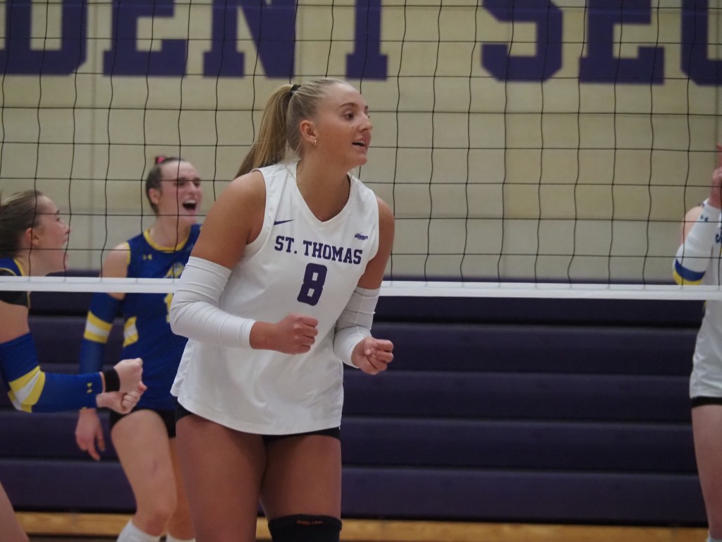 St. Thomas’ Morgan Kealy (#5) with a set of her own.