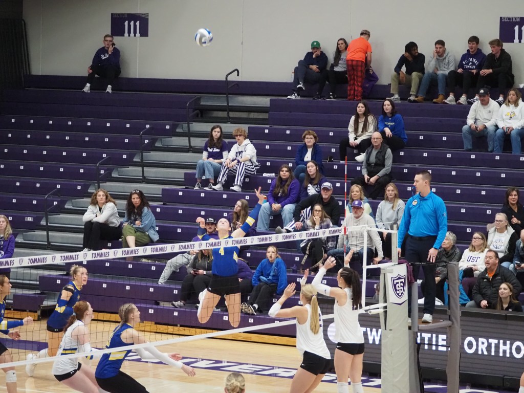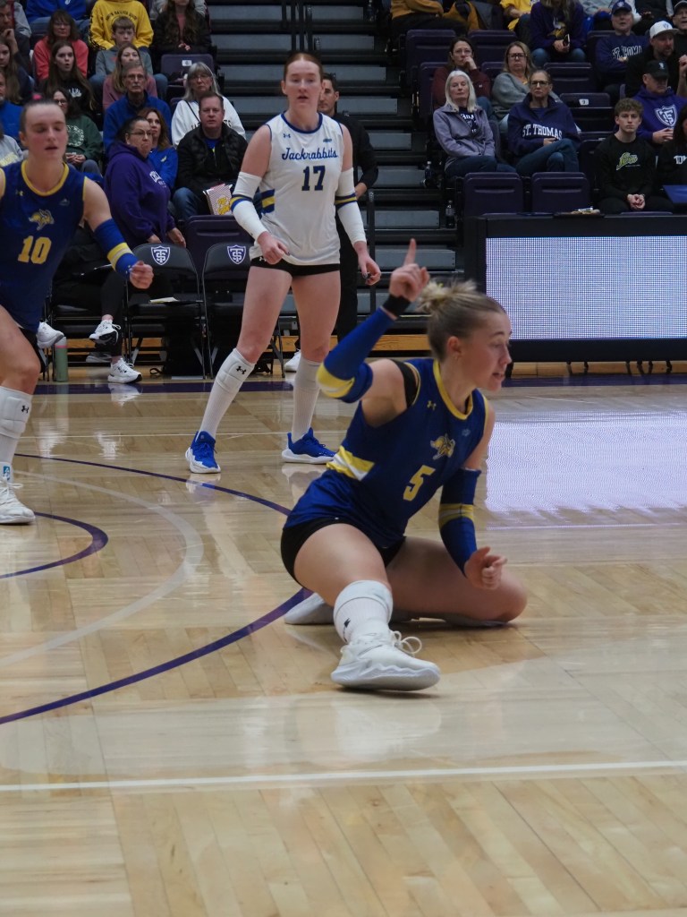 A few weeks ago, we were at St. Thomas for Parents Weekend and sat in on the Women’s Volleyball match. As with a lot of things lately my thought was “this would make for some good pictures” and so I decided to attend yesterday’s match. The Tommies lost to the South Dakota State University Jackrabbits 1 – 3. It was a fun time though and the pictures came out pretty good or so I thought.