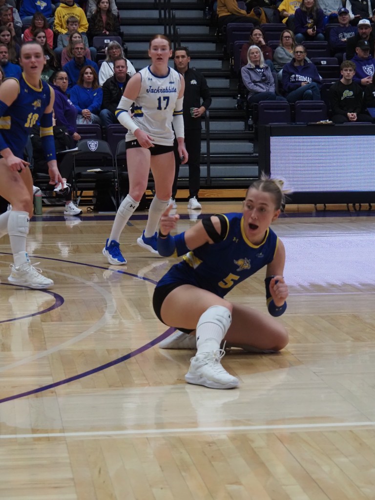 Jackrabbit Rylee Martin (#5) watches…. “is it out? is it out? It’s out.”
