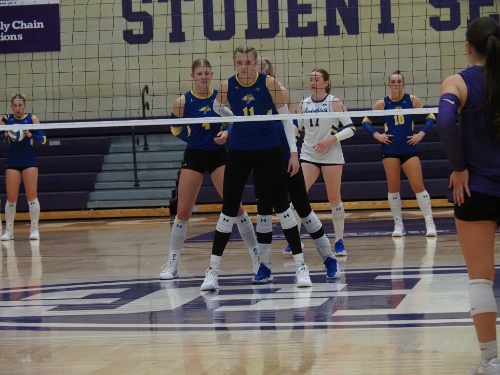 Sydni Schetnan (#11) and some of the other Jackrabbits appear to be ready to dance in a music video.
