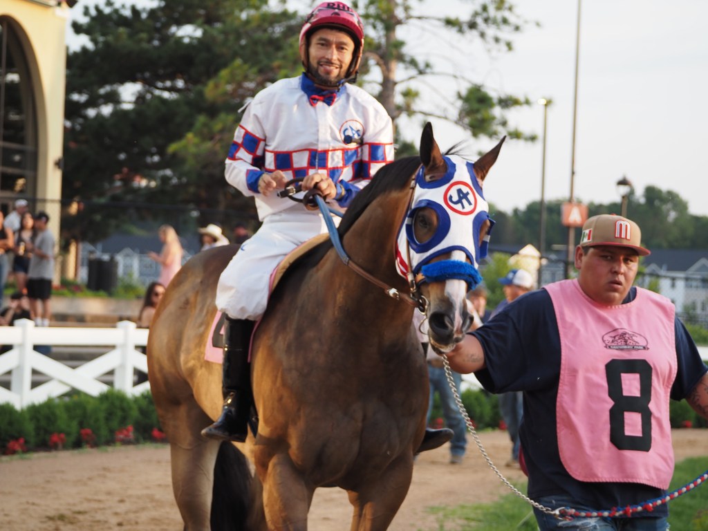 Dickie Bob with jockey Ramiro Garcia in the Walking Ring on June 18, 2025.